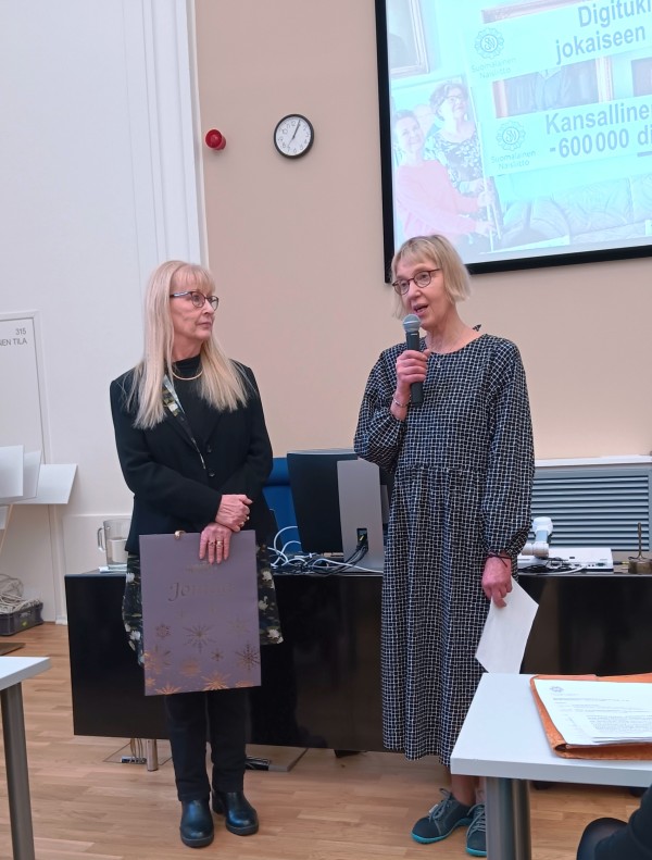 Suomalaisen Naisliiton Helsingin yhdistys järjesti 16.2.2024 Helsingissä Ajankohtaisseminaarin, jossa tarkasteltiin digitalisaation vaikutusta yhteiskuntaan. Julkiset palvelut hoidetaan yhä enemmän sähköisesti. Mutta 600 000 kansalaista jää kokonaan digitaalisten palvelujen ulkopuolelle, koska tarvittavia laitteita tai taitoja tai mahdollisuutta käyttää niitä ei ole. Suomalainen Naisliitto julkisti seminaarissa kansalaisaloitteen Digitukipiste joka kuntaan. Aloite tähtää lainsäädäntöön, joka velvoittaisi kunnat järjestämään viranomaisvastuulla toimivan digitukipisteen joka kuntaan digisyrjäytymisen ehkäisemiseksi.