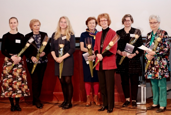 Voittajat Hanna Ahrnberg, Lahja Laitinen ja Ronja Koistinen palkittiin 900, 600 ja 300 euron rahapalkinnolla 14. marraskuuta Suomalaisen Naisliiton Minna Canth -seminaarissa Vanajanlinnassa.
